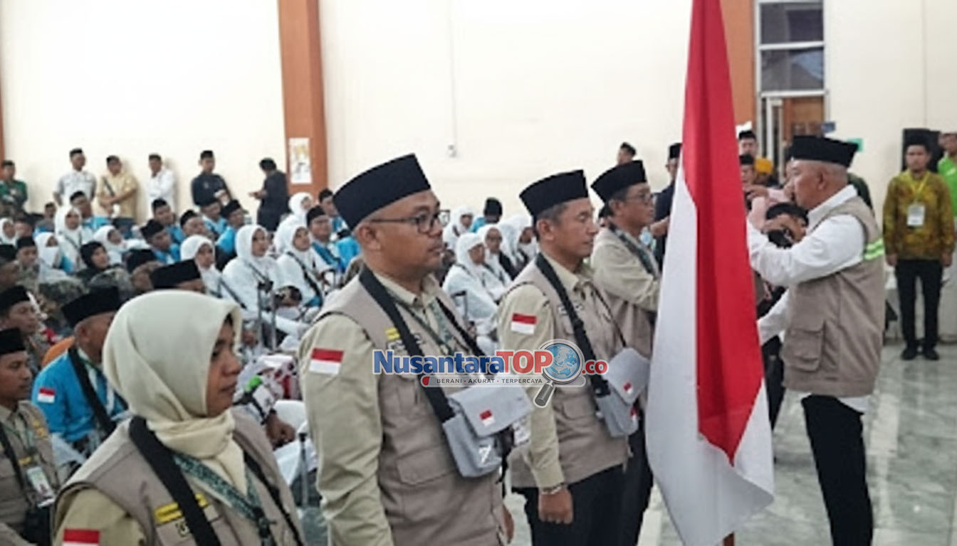Keterangan Foto: Sekda Sumut saat melepas keberangkatan jemaah calon haji Kloter 1 Embarkasi Medan menuju Tanah Suci. (Dara M/NusantaraTop.co)