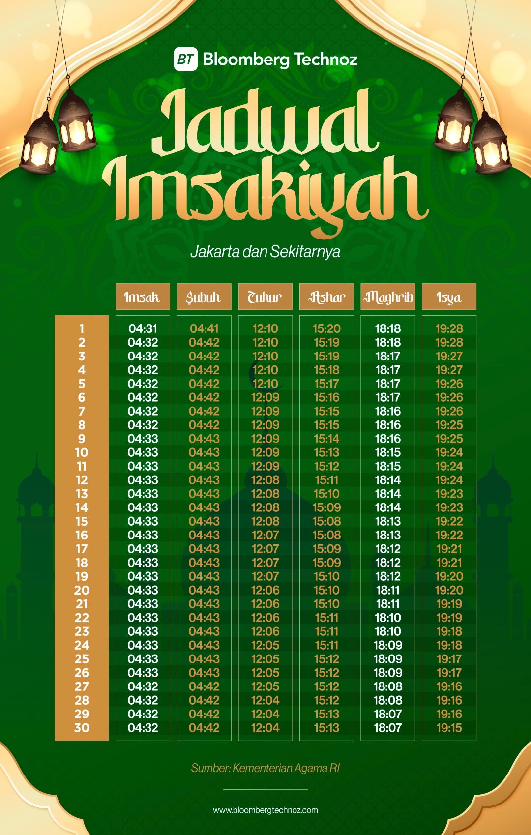 Berikut jadwal lengkap Imsakiyah Jakarta dan Sekitarnya selama 30 hari: