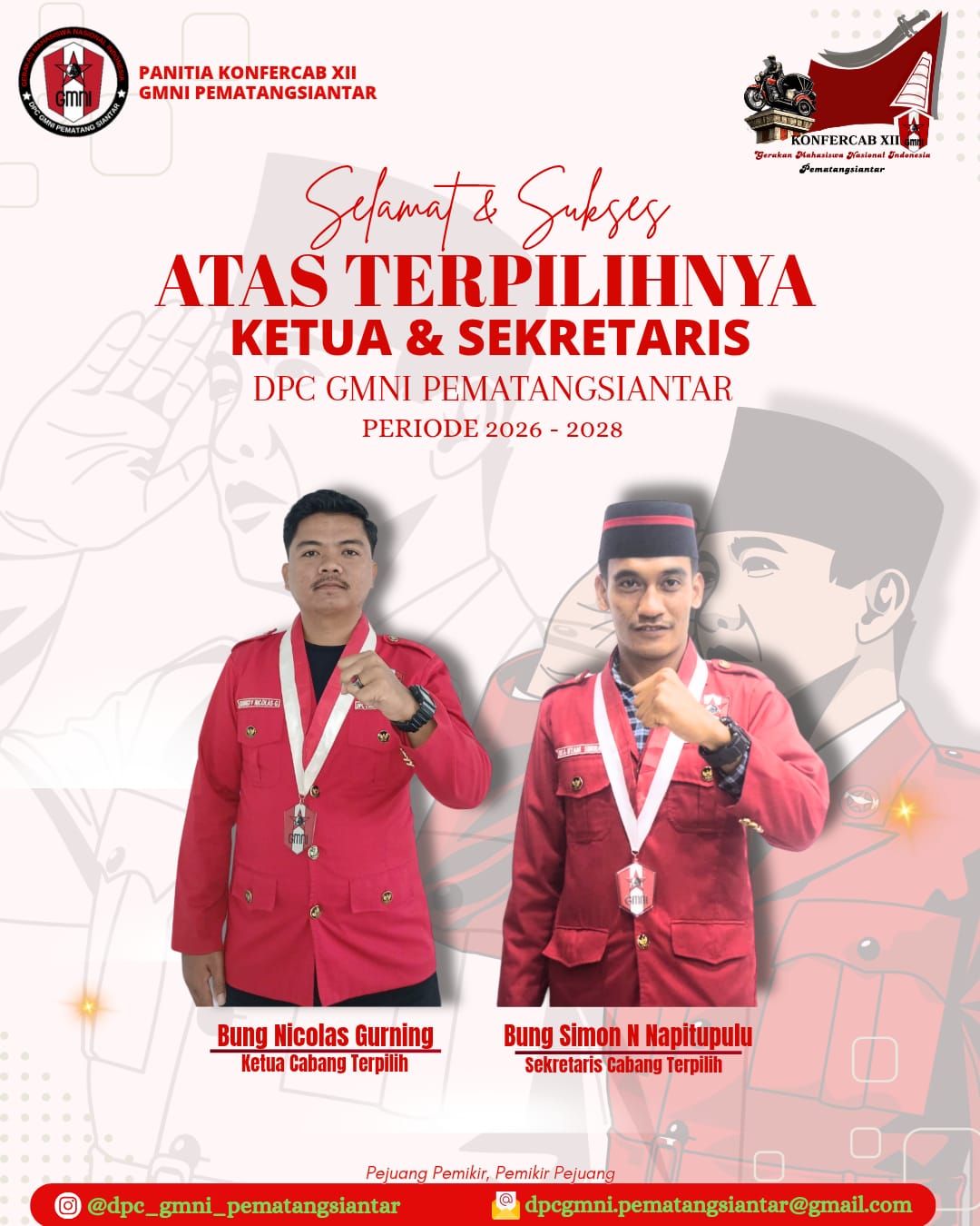 “Konfercab XII ini diikuti seluruh kader dari berbagai komisariat di GMNI Pematangsiantar. Kami memastikan seluruh tahapan berjalan sesuai AD/ART organisasi. Terima kasih kepada semua pihak yang telah mendukung terselenggaranya kegiatan ini,” ujarnya.