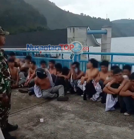 Sejumlah pelajar diamankan oleh personel TNI di kawasan Desa Tongging, Kecamatan Merek, Kabupaten Karo, Sumatera Utara, Senin (20/4/2026), setelah diduga hendak melakukan tawuran saat konvoi perayaan kelulusan. (Tangkapan Layar Media Sosial/NusantaraTop.co)